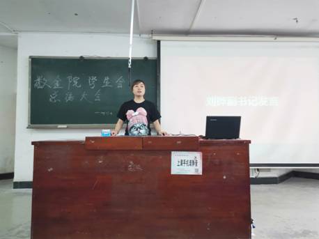 会议伊始,学院党总支副书记刘晔发表讲话,刘书记充分肯定了本届学生会这一年的工作以及取得工作成绩,代表学院对全体学生干部们的辛苦付出表示感谢,对留任的学生干部寄予了殷切的希望,并鼓励学生干部要做时间的主人,合理的安排学习、工作及娱乐时间,更要不忘初心、砥砺前行,做个有情怀、有思想、有担当、有学识的新时代学生干部。随后,辅导员刘珊君老师,谢平峰老师发表总结讲话,对学生会的工作发表了总结和点评,并对即将离任的学生会干部对我院学生管理工作的支持和付出表示感谢。主席团及各部门部长代表部门对一年以来的工作做出了总结,讲述自己的感受和收获及工作上的经验传授,并表达了对我管学生会未来的期望。最后,最后副主席金灵宣读了新一届主席团成员名单,并寄语新的主席团,希望他们继承和发扬学生分会的优良传统,努力工作,积极探索,再创佳绩。