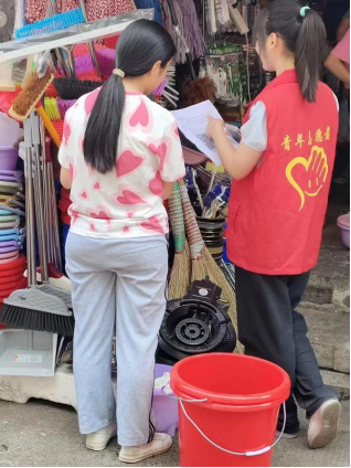同学们亲切耐心地为居民讲解“湘易办”的便利之处,由此提高创造性解决实际问题的能力。另一部分学生为行动不便的居民清理社区周边环境,充分发挥志愿服务精神。