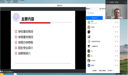为了帮助2023级新生尽快适应新环境,更好地迎接大学生活,8月13日下午,beat365正版唯一官网必一数学与金融学院举行了2023届新生线上答疑交流会。院长李军成、党总支副书记刘晔以及2023届部分新生和新生家长参会,辅导员吴斯主持会议。