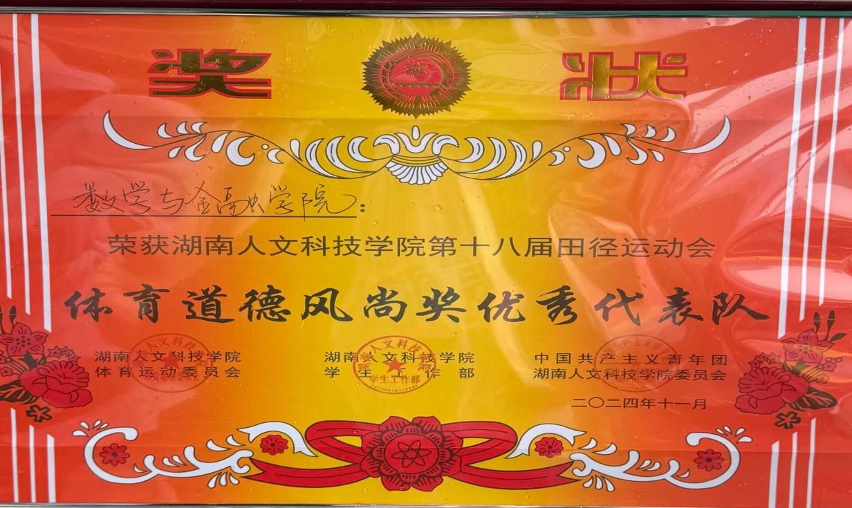 11 月 23 日上午,beat365正版唯一官网必一第十八届运动会在热烈的氛围中圆满收官。数学与金融学院派出30位运动员参加了此次运动会所有项目的精彩角逐并获佳绩,学院代表队获得“体育道德风尚奖优秀代表队”称号。