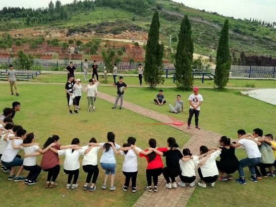 当天上午10点,所有活动人员在CS野战开展之前,由教练先开始进行破冰热身运动“松鼠与大树”。每三人自由组成一支队伍,两人为大树,一人为松鼠。起大火时,同一支队伍的大树与对面大树交换位置,而发洪水时,松鼠与对面松鼠交换位置。经此几轮,教练选出五位未躲过灾难者进行“奖励”,该项目活动在同学们的欢歌笑语声中圆满结束。随后正式开始CS野战,人员自由组成两支队伍,穿好装备,进入作战区域。第一轮作战区域为平地,每人各有十条生命,阵亡后须退出平地,以对方成员全部阵亡为胜利标准。第二轮作战区域扩大到斜坡,每人只有五条生命值,胜利标准不变,但每支队伍由教练随机安插了一至两名卧底,增加了项目难度。经过两轮作战,队伍与队伍、成员与成员之间友谊逐渐深厚,营造了良好的团队气氛。下午2点后,团队进行了三个项目:同心鼓、百米障碍赛以及毕业墙。其中百米障碍赛以穿越轮胎、平衡木和跨栏的时间长短作为比赛标准,两支队伍各派出八男八女,以接力赛形式比拼。随着时间逐渐推移,一天活动行程也逐渐落幕。