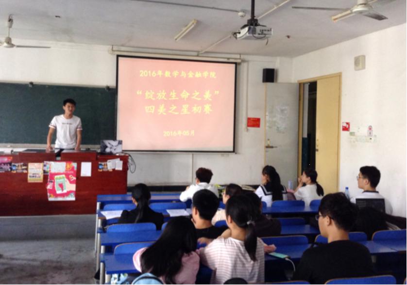 本次选拔活动最后结果是,金融工程1402班刘杰团队和金融工程1503班徐菊香选入生命梦想之美的复赛,金融工程1502班马义超和应数教育1502班范磊选入生命平凡之美的复赛,金融工程信计1501班唐湘团队和金融工程1501班王婕妤团队选入生命独特之美的复赛,金融工程1503班吴瑶和金融工程周晓思团队选入生命坚韧之美。预祝他们在接下来的比赛中取得更好的成绩。(供搞:陈芳,2016-5-13)