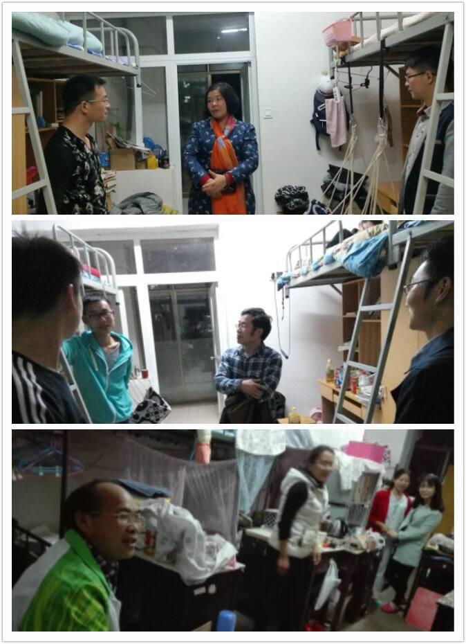 3月6日晚8:30,在陈国华院长、高平书记、周兰副书记的带领下,数学与金融学院组织班主任和辅导员到学生宿舍与学生进行交流,为学生排忧解难。