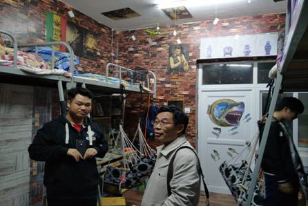 在本次大查寝活动中各位老师都非常的负责、认真,细心检查所有可能存在的安全隐患,认真的记录各个寝室的卫生情况,询问同学们新的门禁系统和热水卡使用的情况。为了保证同学们的住宿安全,高平书记在查寝期间,不断地叮嘱学生们不要做违纪违法的事情,绝对不能贩卖假热水卡,也不能购买假卡。目前正值寝室设计大赛决赛阶段,陈院长高度赞扬我院男寝的温馨布置,肯定了同学们付出的心血和心思,对没有进入决赛的寝室也给予了鼓励,寝室是大学四年的“家”,营造温馨整洁的环境,有利于身心愉悦,也能更好的生活和学习。在查寝之时,老师们也不忘叮嘱学生们,好好生活,好好学习,注意保暖。