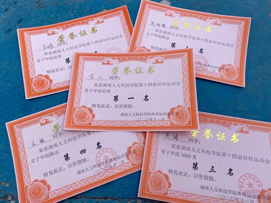 我院学生肖奇斩获男子5000米甲组第二名,男子1500米甲组第二名;黄健同学获得男子5000米甲组第三名;吴振宇获得男子甲组铅球第二名;龙人获得男子甲组铅球第一名、男子标枪第三名;巾帼不让须眉,我院女生王嫣、彭柳臻女子甲组跳远竞赛中也拿到了不错的名次,为我院运动赛事的记录上添了浓墨重彩的一笔。在学院领导老师的精心组织,全体师生的共同参与下,我院荣获学校“体育道德风尚奖”。
