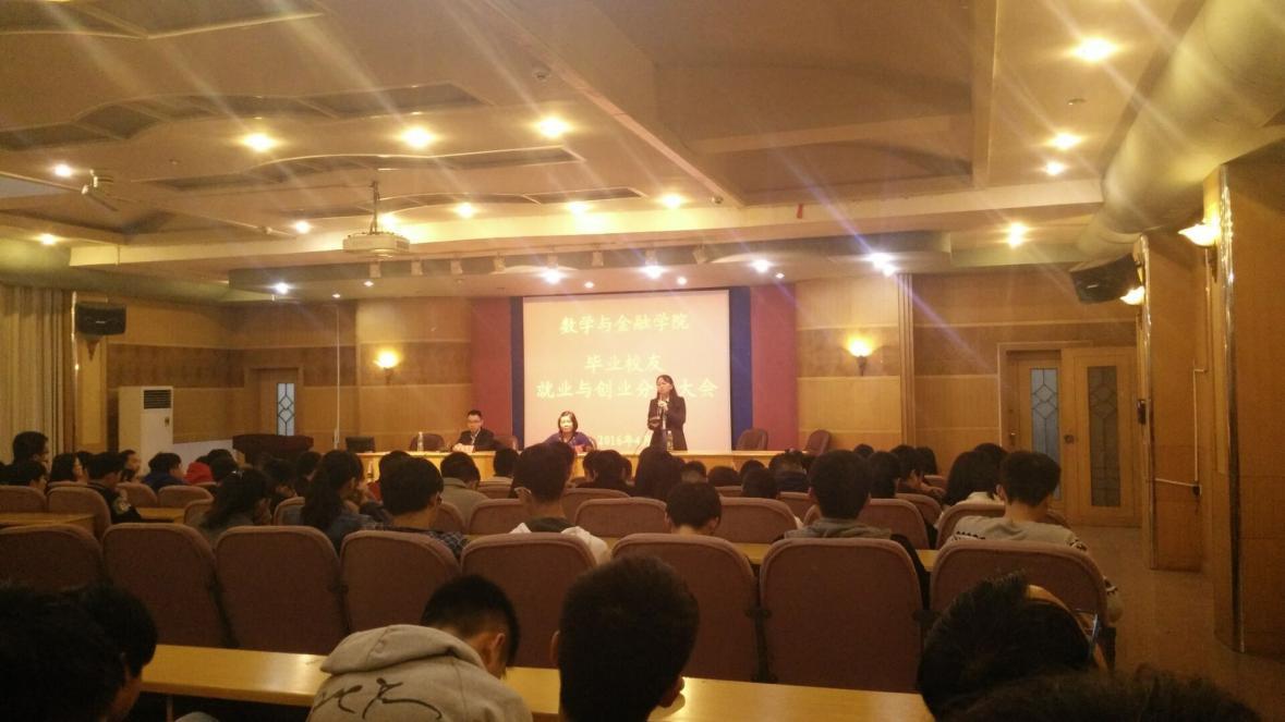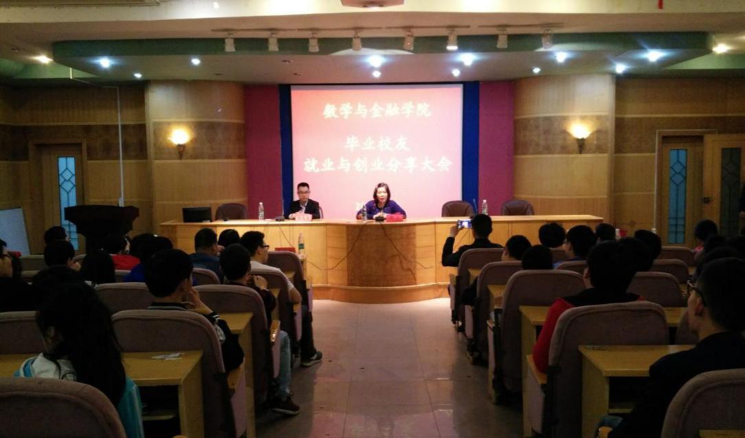 晚,数学与金融学院在养根楼报告厅成功举办毕业校友就业与创业经验分享大会,特别邀请2010级校友张先华与信计专业大一、大二、大三的学生分享就业与创业经验。出席本次大会的还有:创新创业学院院长、招生就业处处长彭晓华、创新创业学院书记、学校团委书记谢柳,数学与金融学院院长陈国华、党总书记高平、党总副书记周兰,以及数学与金融学院信计专业班主任及任课老师。本次大会由周兰副书记主持。