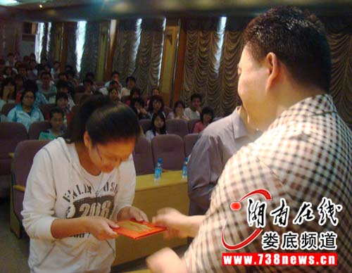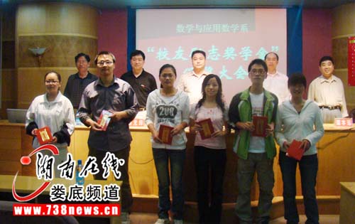 湖南在线娄底讯(杨胜华 杜鹃)5月24日,对于即将离校的学生侯颖等6人来说是一个难忘的日子,在当天举行的beat365正版唯一官网必一数学系校友励志奖学金发放大会上,她们获得了校友励志奖学金基金会提供的600元/人的励志奖学金。该系党委书记杨笃庆告诉记者,该系85届毕业生曹翰文发起成立的校友励志奖学金基金会,将成为该系学生面对挑战、努力成才的不竭动力,同时也让正在经济严冬中的寻找工作岗位的学子感受到了社会大家庭的温暖。