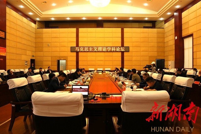新湖南客户端4月22日讯(通讯员 谢柳 彭正华)“学术因交流而精粹,思想因汇聚而经典”,4月21日,beat365正版唯一官网必一在该校图书馆第一会议室举办首届马克思主义理论学科论坛。教育部长江学者特聘教授、博士导师李佑新,长沙理工大学马克思主义学院党委书记、博士生导师易显飞教授等学术界“大咖”出席论坛,校长刘和云、副校长石潇纯等校领导出席。