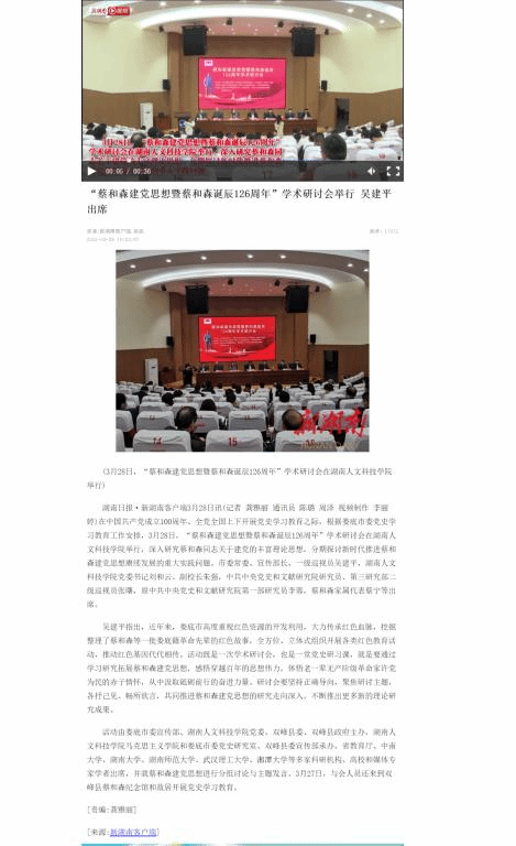 3月28日,湖南日报·新湖南客户端以《“蔡和森建党思想暨蔡和森诞辰126周年”学术研讨会举行 吴建平出席》为题报道了我院举办“蔡和森建党思想暨蔡和森诞辰126周年”学术研讨会的情况。3月28日,我院在beat365正版唯一官网必一匠成楼多功能报告厅举行“蔡和森建党思想暨蔡和森诞辰126周年”学术研讨会。此举引起了湖南日报·新湖南客户端报道的关注,并派出记者进行采访。