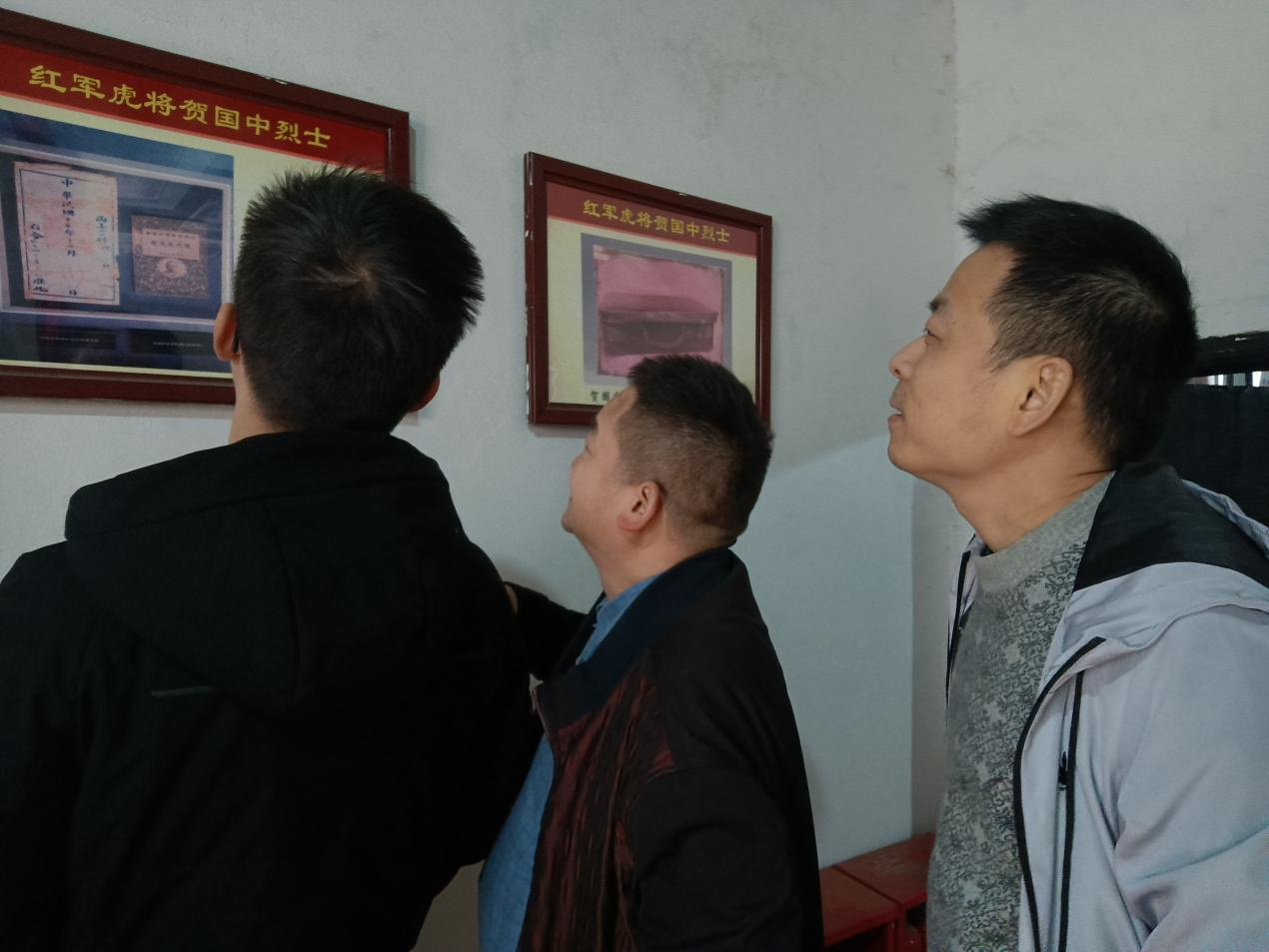 接着,在双江乡党委副书记康陵和人大主席杨志翔的陪同下,杨国辉一行到贺国中故居开展乡村调研,并与贺国中烈士的侄孙进行了交流,他讲述了许多贺国中烈士的故事,同时针对博士们提出的问题作出了明确的答复,为贺国中故居的相关建设丰富资料。随后,在贺国中故居开展了实地调研和考察,对贺国中故居周边设施、室内陈设物件有了进一步了解。