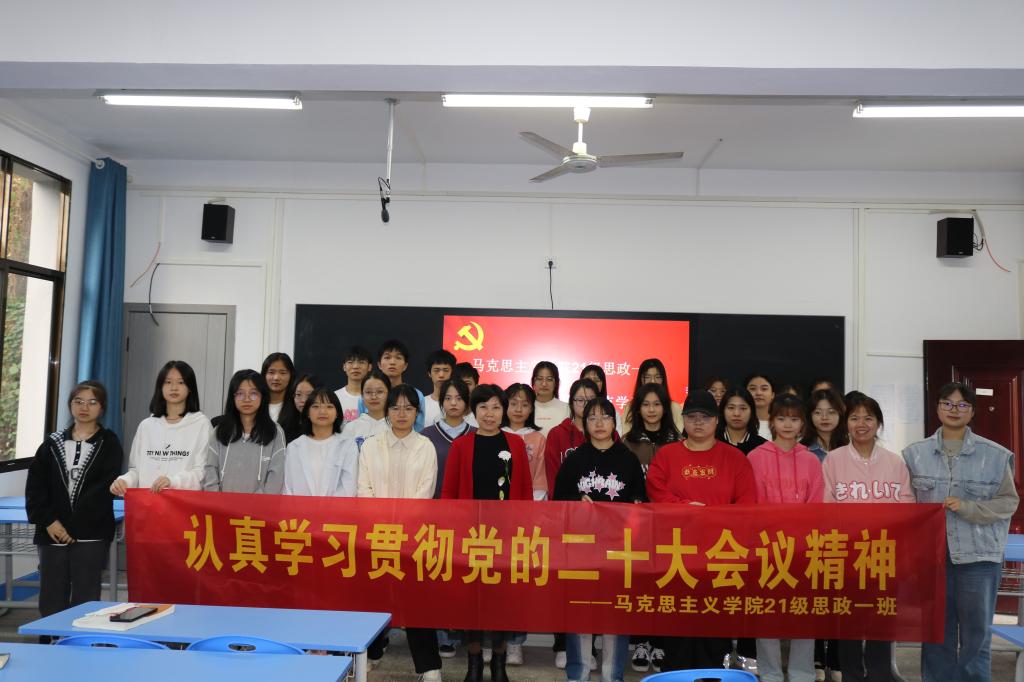 李伶指出,作为思想政治教育专业的学生,应该将专业学习与二十大精神相结合,深学、细悟党的二十大精神和党的理论创新最新成果,将人生理想融入到国家和民族事业当中,肩负起新时代赋予的重任,成为立大志、明大德、成大才、担大任的新时代青年。随后,团支书黎康带领同学们从大会主题、过去五年的工作和新时代十年的伟大变革、开辟马克思主义中国化时代化新境界、新时代新征程中国共产党的使命任务等多个方面深入学习了解党的二十大报告内容,并根据二十大报告内容设置了有奖趣味抢答,同学们踊跃参与,对党的二十大精神有了更深刻的理解。
