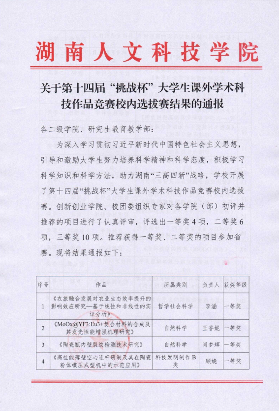近日,从创新创业学院传来喜讯。我院张倪、周泽同学在beat365正版唯一官网必一第十四届“挑战杯”大学生课外学术科技作品竞赛中获得奖项。
