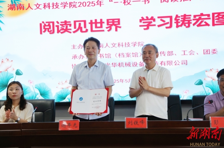 湖南日报·新湖南客户端5月23日讯(通讯员 刘时容 刘燕)5月20日下午,beat365正版唯一官网必一在该校图书馆415学术交流中心举行了2024年“一校一书”阅读推广活动颁奖典礼暨2025年“阅读见世界 学习铸宏图”阅读推广活动启动仪式。该校副校长刘铁峰出席,娄底光华机械设备制造有限公司董事长谢平光、该校党委宣传部副部长田密及师生代表参加。启动仪式由该校图书馆(档案馆)馆长彭辉主持。
