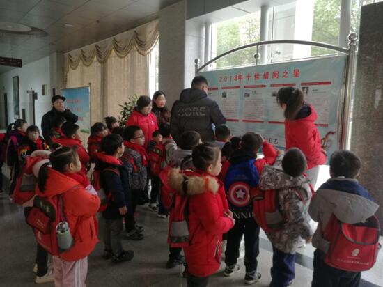 在馆领导亲自引领下,小朋友们整齐有序的参观了文学借阅一区、文学借阅二区和校史馆以及体验了309自习室浓厚的学习氛围。孩子们年纪虽小,但是很懂规矩,没有谁大声喧哗,没有谁胡乱跑动。
