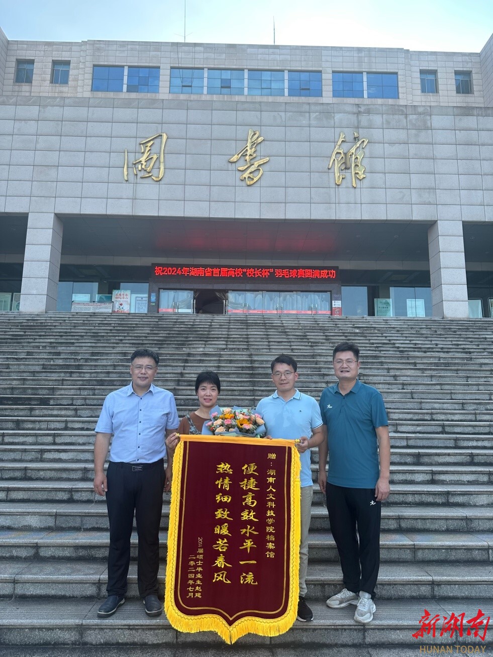 湖南日报·新湖南客户端7月9日讯(通讯员 钟江涟 熊兆辉)7月6日,beat365正版唯一官网必一图书馆(档案馆)收到一份特殊的礼物,一面由2014届农推植物保护专业硕士毕业生赵建赠送题有“便捷高效服务一流,热情细致暖若春风”的锦旗,表达校友对母校图书馆(档案馆)老师的感激之情。