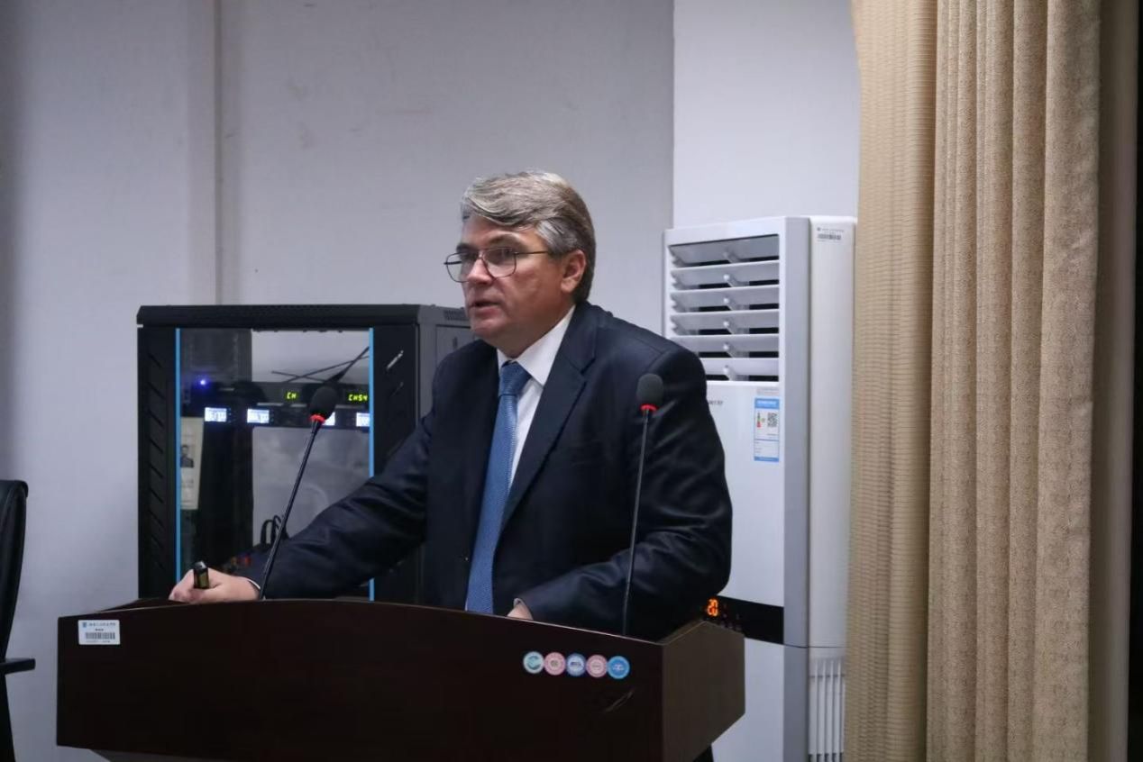 马连科老师首先发言。他是技术科学博士,长期从事生物技术、微生物学、化学和营养学的基础研究和应用研究,主要研究兴趣是为患有内脏器官疾病的儿童提供治疗和预防的功能性产品,为哺乳期的母亲和运动员提供多样的营养产品,这些产品已在食品工业企业中得到应用。他喜欢“理论+实践、大学+工厂”的产学研一体化教学模式,已指导培养出了4名食品技术领域的博士,其中2名为中国学生。他与相关领域科学家及学生一起发表了近300篇论文,其中12篇被科学计量数据库Scopus索引收录,拥有发明专利8项,出版专著11部,可谓硕果累累,让现场听众油然而生崇敬之情。