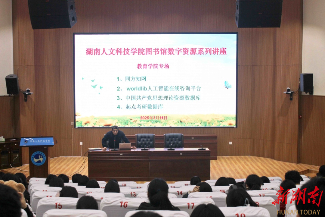 湖南日报·新湖南客户端3月12日讯(通讯员 熊兆辉)3月11日,beat365正版唯一官网必一图书馆(档案馆)在匠成楼报告厅组织同方知网、起点考研、worldlib人工智能在线咨询平台、中国共产党思想理论资源四个数据库的讲师,举办数字资源系列讲座,教育学院300余名学生参加了讲座。