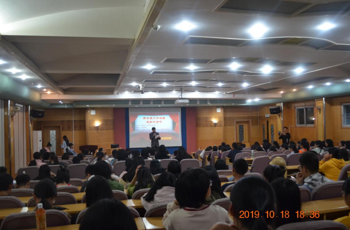 10月19日晚,200余名电影爱好者又同聚养根楼多媒体报告厅,共同欣赏了电影《阿甘正传》。该片讲述了一个先天智障的小镇男孩福瑞斯特·甘自强不息、最终“傻人有傻福”地得到上天眷顾、在多个领域创造奇迹的励志故事。文学院的王国锋老师从电影场景、情调、结构、主题和文本改编等方面给大家做了精彩解读,引发了观众的深层思考,纷纷提问发表自己的看法,王老师都耐心细致地一一解答。活动持续到晚上11点,同学们依然热情满满,准备的纸质图书都被悉数借走。