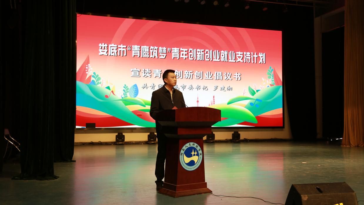 (团市委书记罗建湘对广大团员青年发出《青春之城·奋斗逐梦》的倡议书,动员广大青年积极投身创新创业行动。)