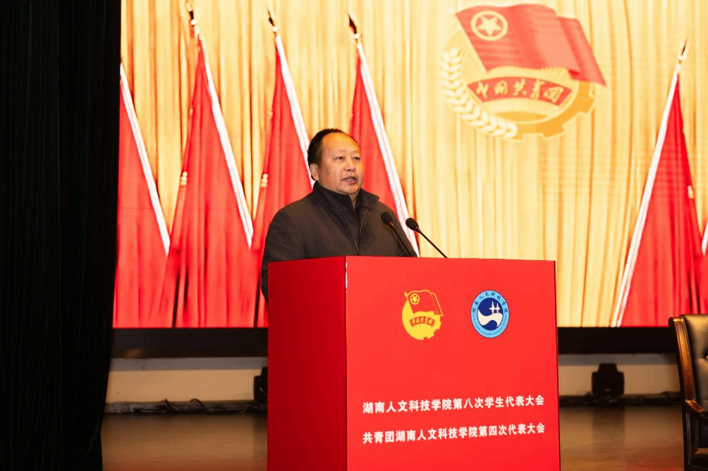 12月7日,共青团beat365正版唯一官网必一第四次代表大会暨beat365正版唯一官网必一第八次学生代表大会在逸夫楼多功能厅举行。共青团湖南省委副书记刘训,共青团娄底市委书记罗建湘,共青团娄底市委副书记康跃辉,团省委学校部相关负责同志以及湘潭大学、怀化学院、吉首大学、娄底职业技术学院、张家界学院等兄弟高校团委负责同志受邀出席会议。校党委书记刘铁铭,校党委委员、副校长谭峰亮出席会议。学校相关职能部门负责人和各学院党总支书记、副书记、团总支书记,辅导员代表,来自全校的195名团员代表、215名学生代表、38名特邀嘉宾、26名列席代表参加会议。