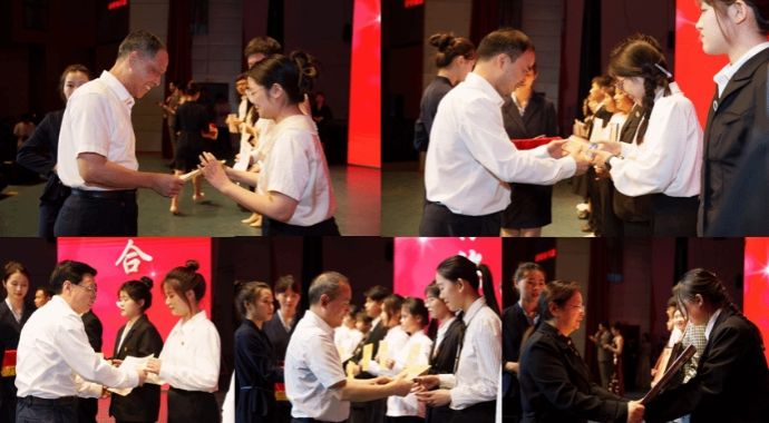 刘铁峰宣读相关表彰决定。表彰共分为团结奋斗篇、养根俟实篇、知行合一篇、青春励志篇、深耕细作篇五个篇章,分别对先进集体、先进个人和有突出贡献的优秀青年教师进行表彰。校领导分别为获奖团队和个人颁奖,现场气氛隆重热烈。