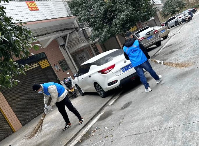 志愿者们将社区垃圾清扫干净