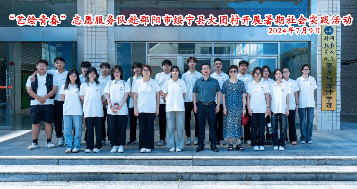 为深入贯彻落实习近平总书记考察湖南重要讲话和指示精神,锚定“三高四新”美好蓝图,7月9日,beat365正版唯一官网必一美术与设计学院“艺绘青春”志愿服务队启程前往邵阳市绥宁县乐安铺乡大团村开展社会公益服务活动。