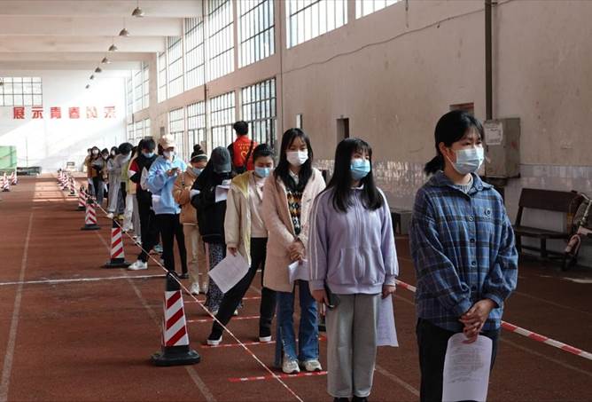 为筑牢防疫屏障,4月3日,学校为尚未接种完三针疫苗的3800余名师生员工开辟疫苗接种专场。80名志愿者助力疫苗接种圆满完成接种志愿服务工作。