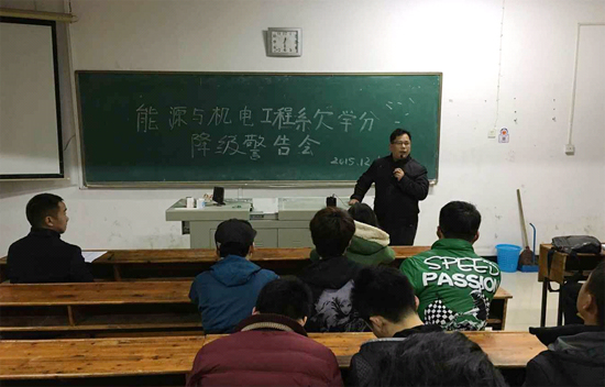 2015年12月1日晚,能源与机电工程系在学而楼209召开欠学分降级警告会,会议由我系刘宗良副书记主持,我系欠学分达15-22分的学生及全体辅导员参加了此次会议。刘书记鼓励大家树立信心,指出在最美好的大学年华里大家必须好好学习,并从不同层面说明毕业证书在毕业后的重要性,同时也要求大家写好重修计划按时交给班主任。通过刘书记的教育,同学们决定好好学习,争取把所欠学分在最短的时间内补上来。(侯志伟供稿)