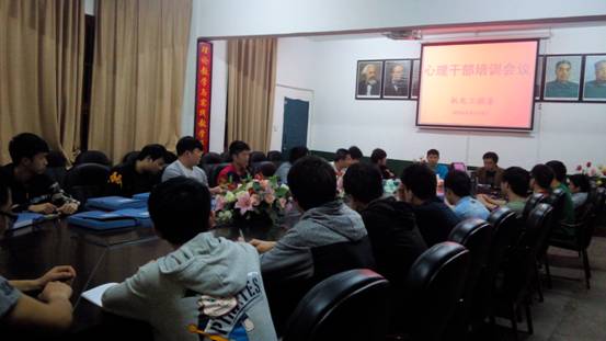 2014年4月14日晚上7:30分,机电工程系在若谷楼205系会议室召开全系心理干部培训大会,会议由辅导员宋双老师主持。