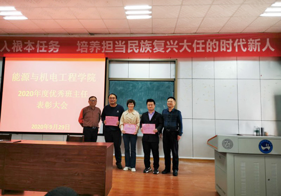 为全面落实立德树人的根本任务,建立健全班主任选拔和培育机制,完善突出专业能力与工科学生人文素质培养结合、专业课程与思政教育教学结合的模式,推进构建“1234”工科特色的“三全育人”体系,2020年9月,能源与机电工程学院采取自愿报名、教研室推荐、学工办审核、党政联席会议研究决定的方式,选拔了陈新、禹翼、郑亚亚、徐振峰、邓岭、肖清武、冯广智、曾稀等8位优秀的专任老师担任2020级9个新生班级的班主任。