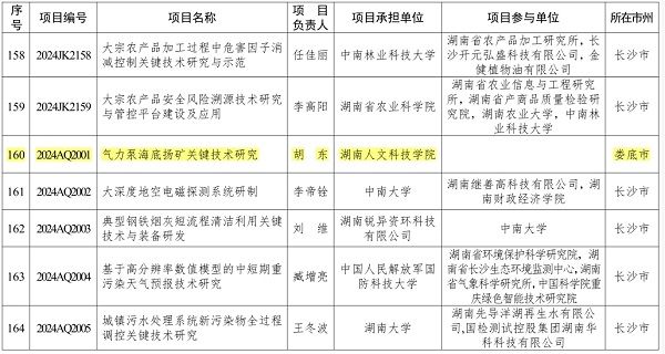 近日,湖南省科技厅发布了《关于2024年度湖南省重点研发计划项目立项的通知》,beat365正版唯一官网必一水射流团队胡东教授牵头申报的课题“气力泵海底扬矿关键技术研究”(项目编号:2024AQ2001)获立项资助。
