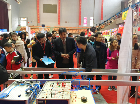 展示期间,我院展出的“快递包裹自动识别分类装置”、“啤酒生产线上自动贴标机”、“硬币高效自动分拣机”等作品吸引了校党委书记郭军教授、创新创业学院谢柳书记、娄底科技局副局长李健等领导长时间驻足咨询,我院科技作品展示的“自动、高效、智慧”等特点也吸引了众多学生参观,部分参观学生表达了今后参加各类创新竞赛的兴趣和愿望,我院展区现场气氛热烈。凭借创意新的作品和精心的布展,我院高分获得本次活动的优秀组织奖。 (毛永宁供稿)