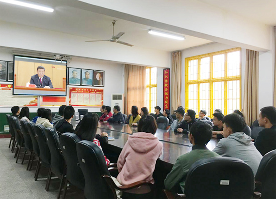 2019年4月30日上午,能源与机电工程学院党总支组织师生在党员活动室观看了纪念五四运动100周年大会。通知一经发出,收到了师生们热烈的响应。班子成员、党员教师、发展对象、入党积极分子和学生会干部40余人齐聚若谷楼205党员活动室,观看直播。(图文:邓景文)