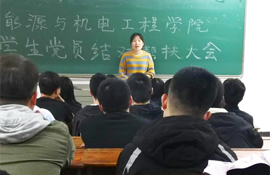 2019年5月8日下午三点,能源与机电工程学院党总支召开学生党员结对帮扶大会。会议由能机学院党总支组织委员邓景文主持。能机学院党总支副书记伍铁斌、全体辅导员及全院各年级学生党员参加会议。