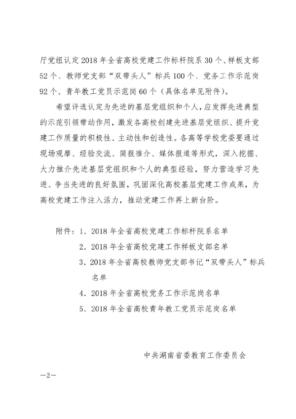 近日,中共湖南省委教育工作委员会下发了《关于2018年全省高校党建工作标杆院系、样板支部及“双带头人”标兵、党务工作示范岗、青年教工党员示范岗评选结果通报》,能源与机电工程学院教工党总支副书记,原教工第一党支部(自动化专业)书记荣获2018年全省高校教师党支部书记“双带头人”标兵称号。