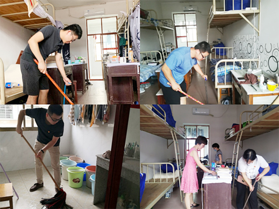 在新冠肺炎疫情防控期间,部分学生宿舍由于久未打扫,天气潮湿,被褥易发霉,为给肄业生提供整洁、干净、卫生的学习、生活环境,校党委委员、宣传部长谢柳,能源与机电工程学院全体院领导、教工党员、辅导员、班主任深入肄业生宿舍,以义务劳动的方式为学生服务,用实际行动践行服务育人的理念,发挥党员先锋模范作用,勇于担当使命,向党的99岁生日献礼。