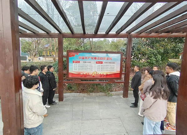11月19日下午,全体党员赴廉政广场,认真学习廉政广场宣传栏的先进人物的清廉事迹及廉政建设的相关文件。副院长兼教工第一党支部书记伍铁斌说:“通过学习这些清廉事迹,我希望廉洁教育能吸引到更多的同学参与进来,廉洁是一种坚强不屈的意志力量,廉洁是一种永不衰竭的道德力量,廉洁是一种榜样力量,让我们端正廉洁品行,树立积极的价值观,始终保持青年自身的蓬勃朝气。”