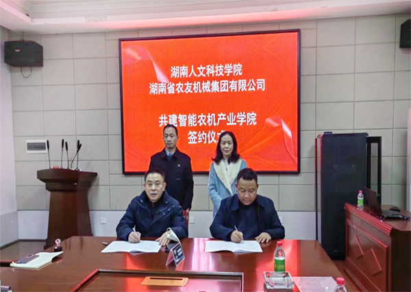 为深化学校和湖南省双峰县人民政府及其相关农业机械企业之间的校地校企合作,提高应用型人才培养质量,12月15日上午,能源与机电工程学院院长胡东代表学校和湖南省农友机械集团有限公司董事长刘若桥签订共建智能农机产业学院合作协议,科研处副处长陈瑶等人出席签约仪式。