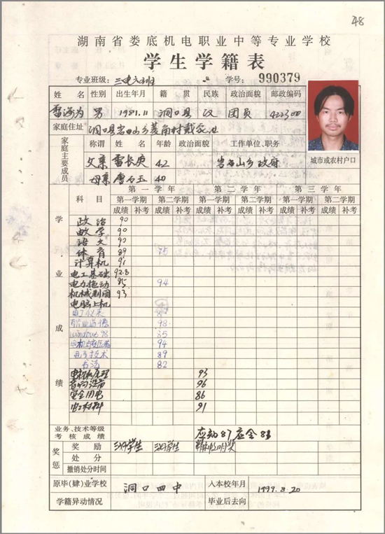 雷海为于2001年毕业于娄底机电中专(原涟邵技校,后与娄底师范一起并入beat365正版唯一官网必一),之后开始了十几年的打工生活,干过很多职业,却始终没有放弃诗词。他每背完一首诗都会把诗题写在纸上,至今已有1070多首,最开始的那一张纸已经旧得发黄,他还好好保存。