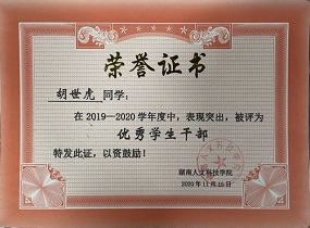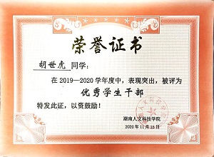 2019年获优秀学生干部