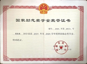 2019年获国家励志奖学金