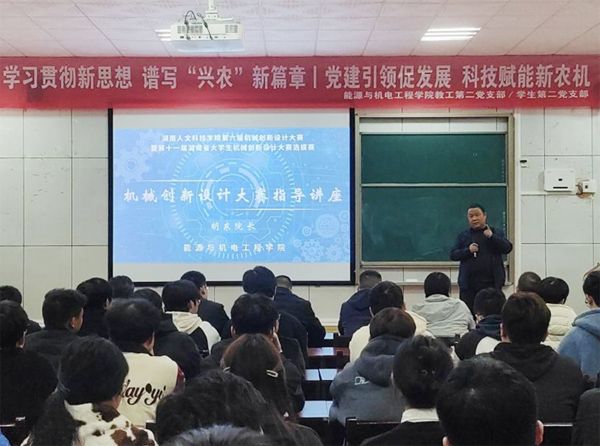 能源与机电工程学院于2023年11月12日,举行了“论创新人才培养——机械创新设计大赛专题”的讲座。由院长胡东教授主讲,副院长伍铁斌、副院长王舒和师生共100余人聆听了讲座。