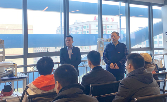 谢常清一行参观了企业的基本设施、工作环境、食宿条件,详细了解了实习企业的基本情况和培训特色。座谈会上,谢常清、石海对实习生的轮岗实习、就业前景和疫情防控等具体问题开展了调研和工作安排,同时与邵东智能制造技术研究院负责人就校企合作培养人才“实习+就业”模式进行了深入探讨,并达成长期合作共识。