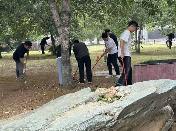 院青工部有关负责人在老师的指导下统筹全局,通过学生会、班委会、微信群等渠道广泛开展宣传动员活动,并组织各班工作。新生在指引下按时报到、有序领用劳动工具,分片区开展清理工作,严格遵守团队纪律,整个过程井然有序。