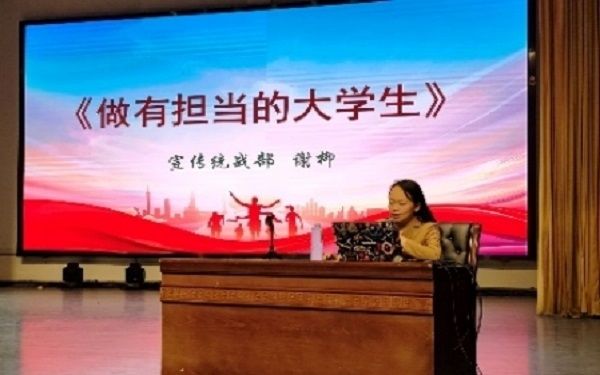 谢柳以《做有担当的大学生》为题,以“95岁老党员张富清的本色人生”作为视频导入,张富清老人“我有什么资格去向人民摆我的功劳?”“我不去谁去!”这些铿锵有力的话语背后是老一辈共产党人的情怀担当,引发学生深思。谢柳深情讲述了解放军战士叶根土维护民族独立和民族尊严、在历史洪流中奋勇向前的革命故事,生动描绘着改革开放以来社会主义现代化建设的伟大成就,勉励在座青年学生从四个维度学习和把握党的百年历史,鲜明印证了中国共产党人的先进性和人民性。随后又带领学生重温了中国共产党人的初心和使命,激励学生不断从中国共产党人的精神谱系中汲取智慧和力量,发扬红色传统、传承红色基因、赓续红色血脉,矢志成为爱国主义精神最坚定的弘扬者和实践者。互动环节中,在场学生针对“红船精神”、“精神谱系”等内容进行了提问,表现出对党史学习的浓厚兴趣。