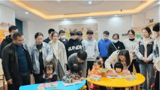 师生党员为福利院的孩子们准备了牛奶、书包、文具盒、零食和衣服等生活学习用品。为了让福利院的孩子们感受来自社会的温暖和关怀,师生党员们耐心地陪福利院的儿童调馅、和面和擀皮等,福利院孩子们感受到了爱的温馨,享受着难得的欢聚时光。随后,教师党员刘波老师手把手教孩子们如何画画,亲切地询问他们的兴趣爱好,不断对其进行肯定和赞扬,帮助其树立自信、快乐成长。教师党员伍铁斌老师对那些因先天残疾无法融入正常社会的儿童进行了心理疏导,激励他们学会在逆境中前行、在绝境中成长,培养自立自强、永不怕输的奋斗精神,涵养回报祖国、回报社会的家国情怀。学生党员们陪同孩子们玩游戏,孩子们玩游戏时开心大笑、活泼可爱的样子也深深的感动了师生党员们。学生党员代表龚雅婷也深切感慨道,“福利院的每一个经历,都让我更加深刻地理解了‘使命’的意义。时代的责任赋予青年,时代的荣光属于青年。新时代青年生逢其时、重任在肩,必须厚植责任感,激发行动力,在为人民服务的伟大实践中实现人生价值。”