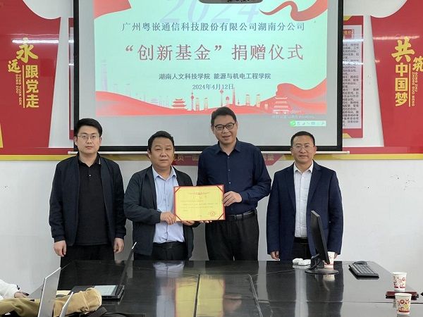 4月12日下午,广州粤嵌通信科技股份有限公司湖南分公司“创新基金”捐赠仪式在能源与机电工程学院同德楼306会议室举行。广州粤嵌通信科技股份有限公司湖南分公司总经理周阳受邀参加,能源与机电工程学院院长胡东、副院长伍铁斌、副院长王舒、部分师生出席会议。会议由副院长伍铁斌主持。