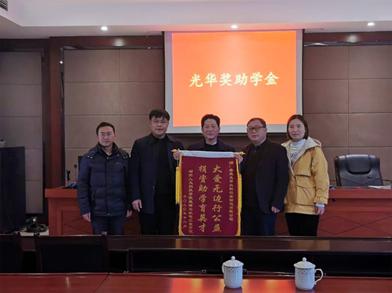 颁奖仪式后,学院领导向娄底光华机械设备制造有限公司赠送书写“大爱无边行公益,捐资助学育英才”的锦旗。谢常清代表学院感谢谢平光先生一直以来对母校教育事业的支持,表示将不负校友对母校的期待,牢记初心使命,奋发担当作为,坚持全面落实立德树人根本任务,为国家培养更多的社会主义建设者和接班人。(图/文 戴建利)