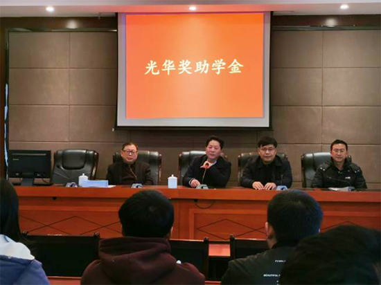 谢平光先生为学生颁发光华奖助学金